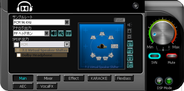こちらが、この商品の目玉でもある、ドルビーヘッドホンの設定項目です。