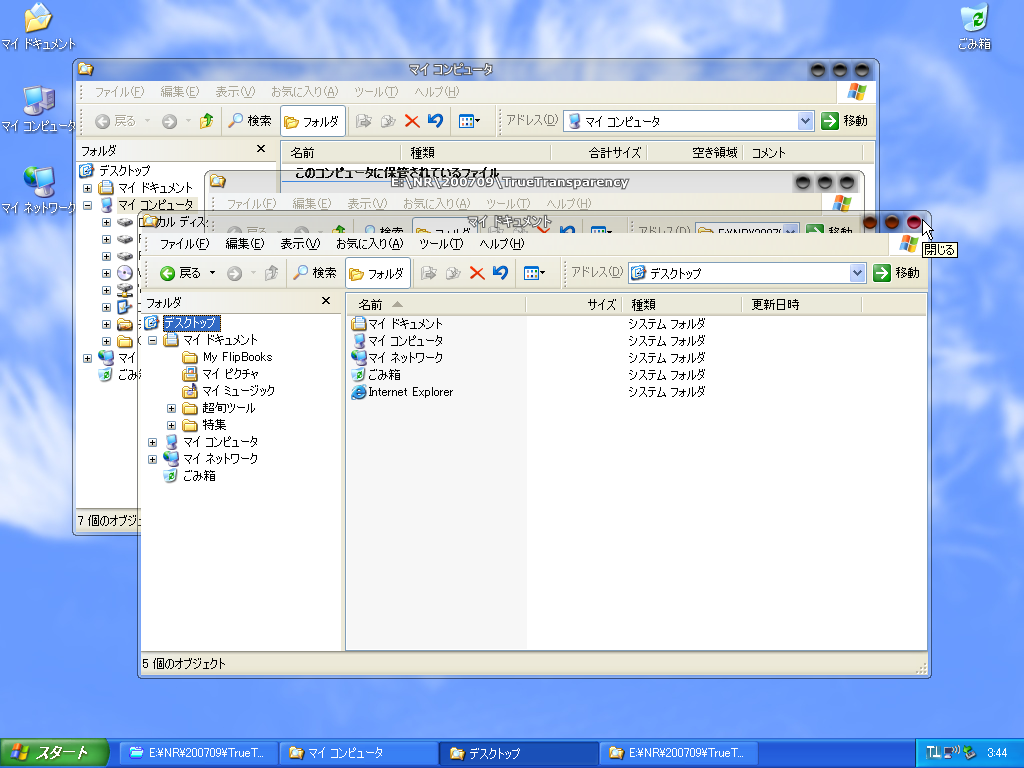 前回紹介した「WindowsTP」の全部透明化してしまうという難点を解決できるソフトなんです。