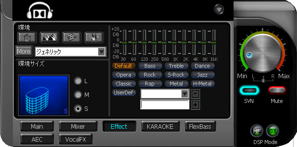 こちらは、Realtekにもあったようなエフェクト機能です。