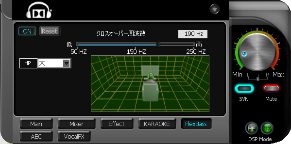 普段聞く「Travis」とかだとぜんぜん分からなかったのですが、パンク・ラウド系の曲を聞いて、FlexBASSをいじってみたら、50Hzはそんなに変わらないものの、上げていくとだんだんベースなどの低音が綺麗に消えました。この機能使う場面あるのかな・・・