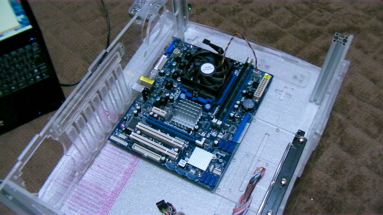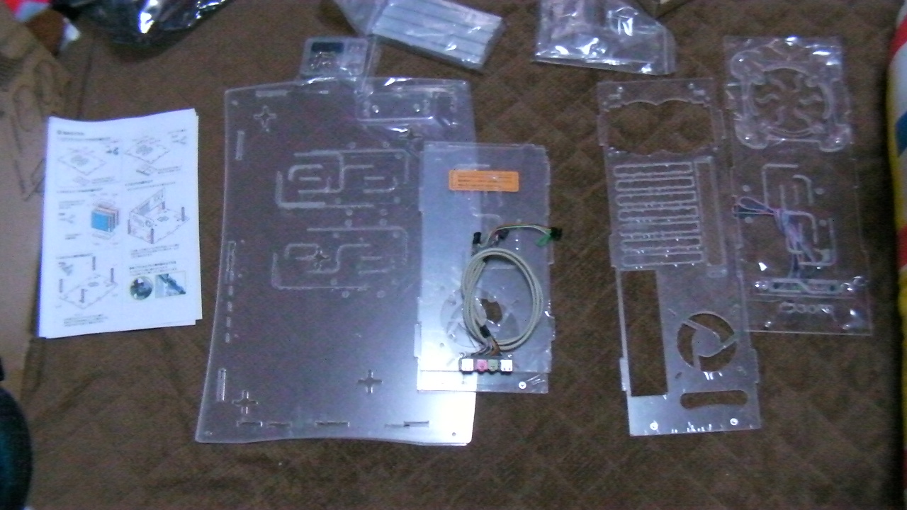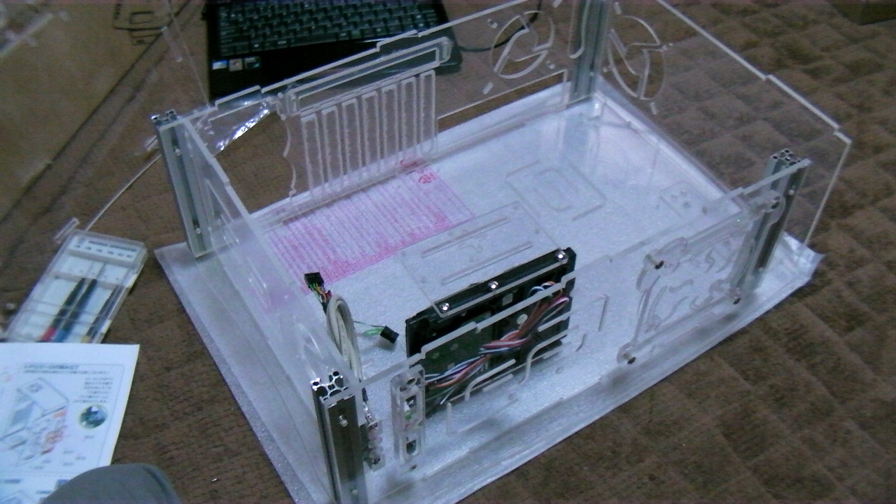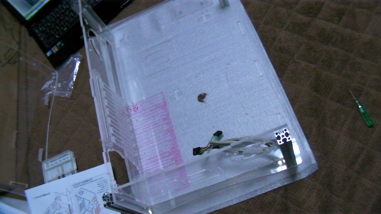 普通のPCケースならネジをとって、ハメるだけでいいのですが、今回拘ってアクリル製PCケースにしました。